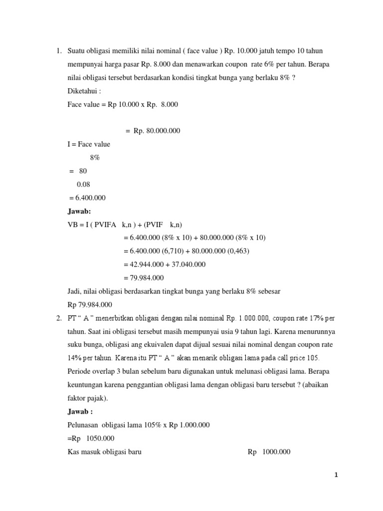 Contoh Soal Nilai Obligasi Dan Jawabannya