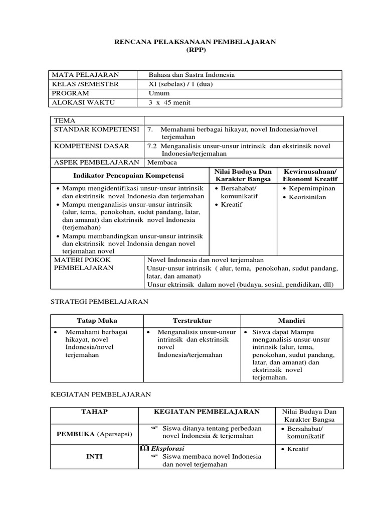 Berikut ini adalah download administrasi kelas x kurikulum ktsp yang merupakan kumpulan file dari berbagi sumber tak berkategori tentang rpp sma bahasa indonesia tentang novel yang bisa bapak ibu gunakan dan diunduh secara gratis dengan menekan tombol download biru dibawah ini. Rencana pelaksanaan pembelajaran rpp bahasa indonesia kurikulum 2013 k13 kelas x tentang puisi. Rpp ini menyajikan langkah langkah pembelajaran kd 3 3 dan 4 3 materi teks cerita novel sejarah.