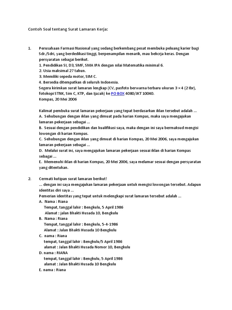 Contoh Soal Surat Lamaran Kerja Beserta Jawaban Kumpulan Surat Penting Cute766