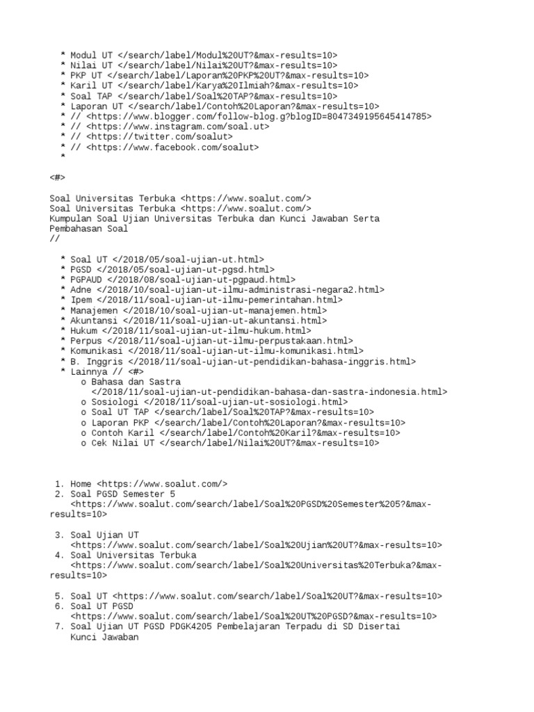 Soal Ujian Ut Universitas Terbuka Pgsd Beserta Kunci Jawaban Lengkap Untuk Semua Semester Universitas Kunci Pendidikan