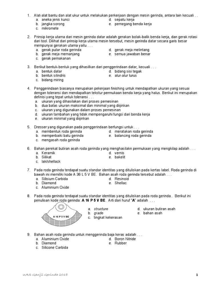 Contoh Soal Pilihan Ganda Mesin Gerinda Datar Contoh Soal Terbaru
