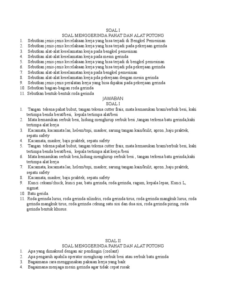 Contoh Soal Dan Jawaban Mesin Gerinda Ilmusosial Id