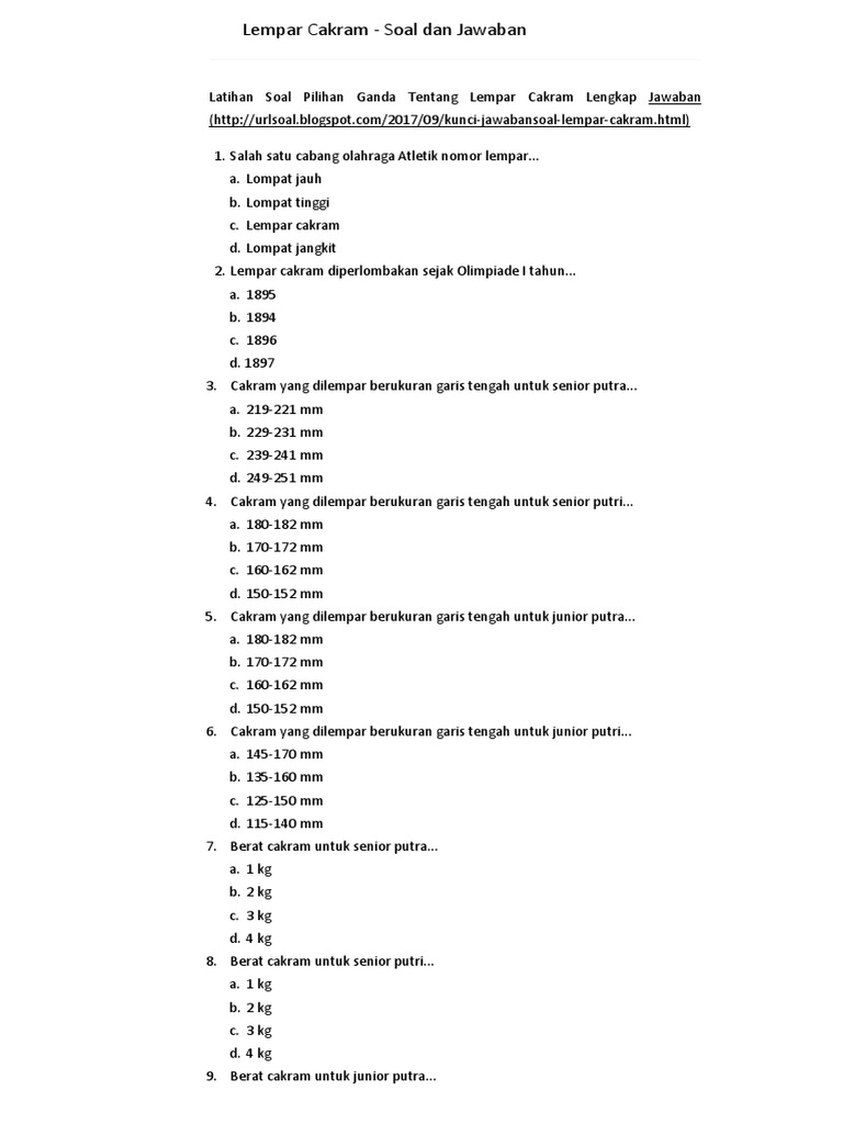 Lempar Cakram Soal Dan Jawaban Url Soal