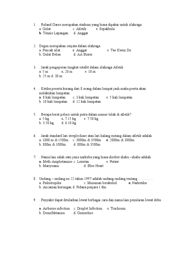Kumpulan Soal Penjas 50 Soal Berserta Jawaban 2