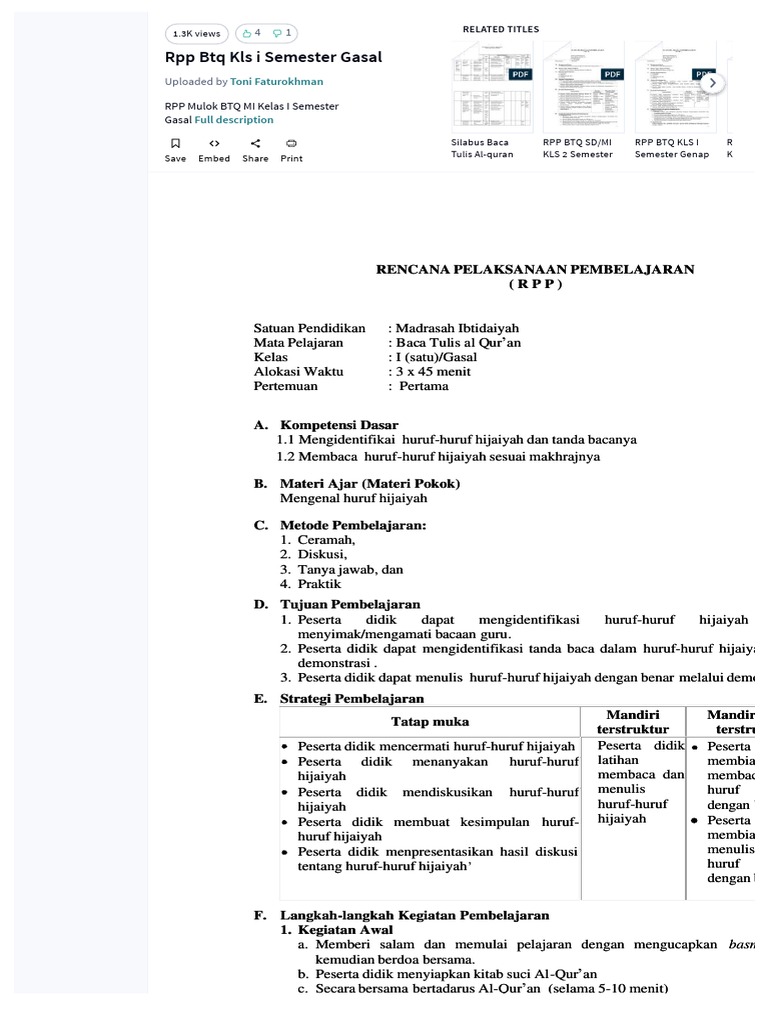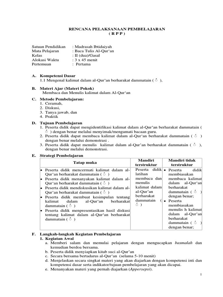 24 jam 12 x pertemuan minggu ke 9101112. Silabus dan rpp btq madrasah ibtidaiyah mi k13. RPP 1 Semester 1 Halaman youtubee4tmom7b0XQ2.