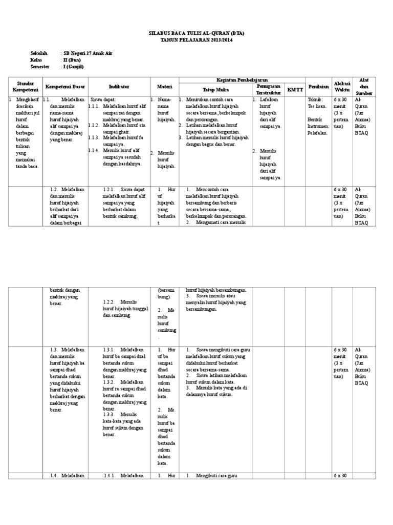 Silabus btq sd kelas 1 6. Perangkat Pembelajaran Baca Tulis A-Quran Kelas 6 SD. Program Semester Kelas 7 4.